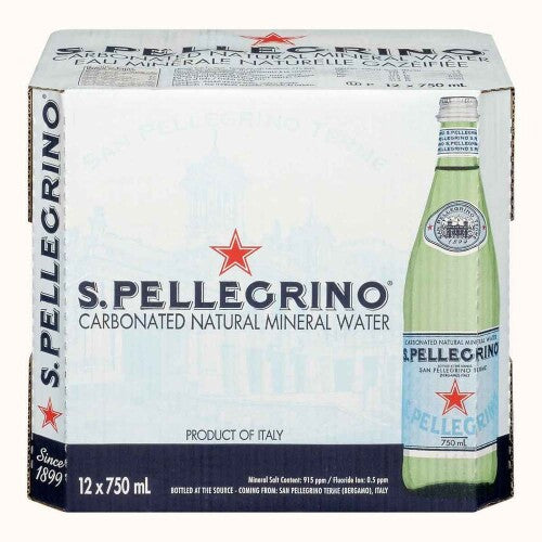 SAN PELLEGRINO, WATER MINERAL NATURAL CARBONATED, 15 x 750 ML